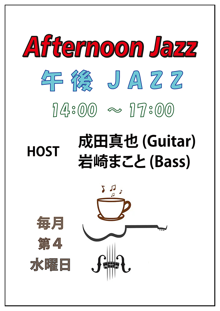 ◆ Wednesday APRIL 2th 14:00~17:00 Afternoon Jam Session