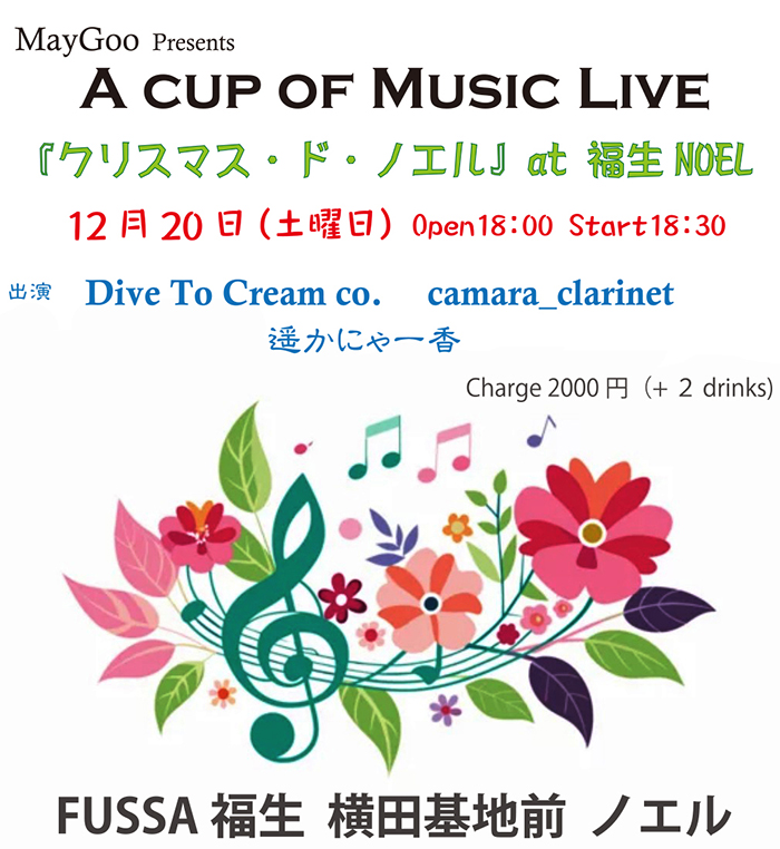 J-POP、Jazz曲、洋楽、オリジナル曲 OPEN LIVE @ Cafe de Noel